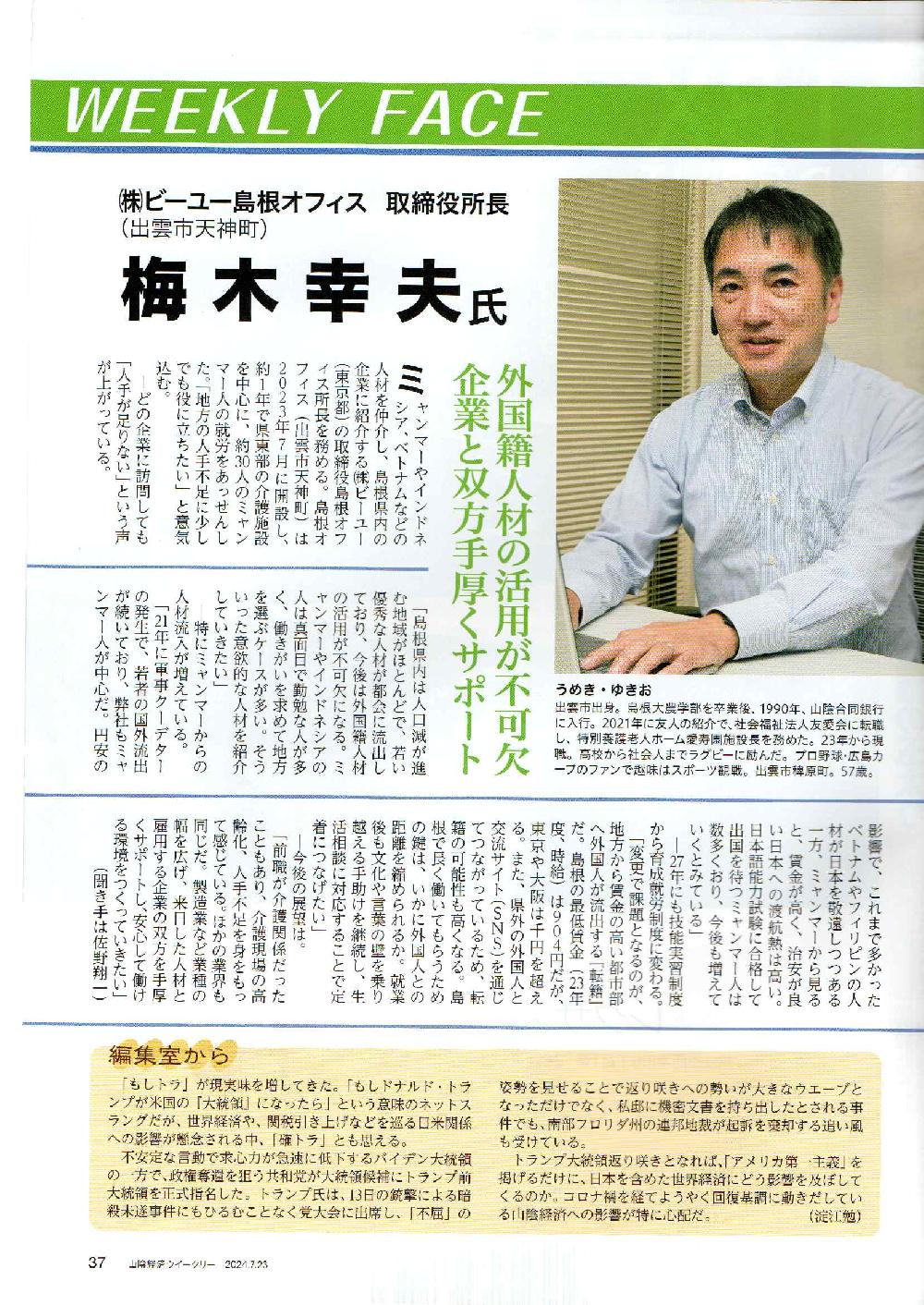 山陰経済ウィークリー NEWS お知らせ ホームお知らせ山陰経済ウィークリー様に弊社島根オフィスについて掲載していただきました 2024.07.25 お知らせ 山陰経済ウィークリー様に弊社島根オフィスについて掲載していただきました 7月23日号の山陰経済ウィークリー様に、弊社島根オフィス取締役所長 梅木幸夫のインタビュー記事が掲載されました。 一覧へ戻る Category お知らせ Archive 2025 2024 2023